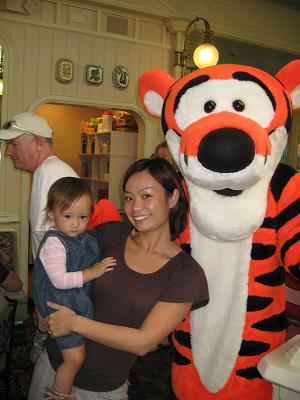 年パスを買ってからあんまり活躍させてなかったんだけど、最近年パスを持ったお友達が増加♪最近は週1回のペースで行ってます。 そのせいで、美亜はデズニーの近くになると車の中で“チッチー(ミッキー)”とか“ミミー(ミニー)”とか言ってます。 そして毎朝見てるテレビ番組のテイガー&プーが大好きで、プーさんのキャラクターブレックファーストに行ってきました。あんまりデズニーのことをよくわかってない私なもんで、お友達のすがこさんにいろいろ頼んで連れて行ってもらいましたー。ありがとう、すがこさん。 とっても楽しかったです。 美亜は、最初はキャラクターを遠めで見て喜んでいたけど、近くに来て泣く。でも、ジーと見て怖くないと思ったのかそれからは平気でした。 プーしゃん(プーさん)とイーオ チガー(テイガー) 今日はとてもパーク日和♪ 話は変わって、昨日クロワッサンを作りました。 明日日本に帰ってしまうすがこさんに作ったんだけど、あんまり思ったのが出来ずに渡せませんでした。 日本のクロワッサンみたいにサクサクなのが作りたいです。 すがこさんいろいろしてもらったのに、何もしてあげられなくてごめんなさい。