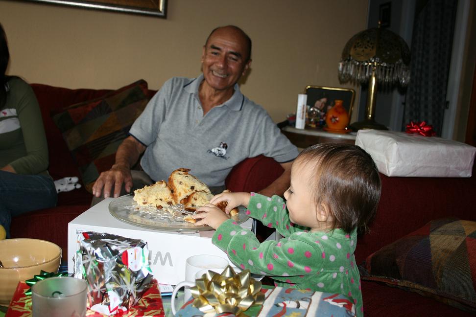 とてもかわいらしい義母さん。 美亜はもうすぐ2歳なんだけど、おかあさんは美亜を見るのは初めて。 そのおかあさん、アメリカに住んでいて、自分の孫を見るのが初めてなんです。 旦那もそういうお母さんにはとても腹を立てていたよう。自分のことがかわいくないんだと落ち込んでいたこともあった。クリスマスプレゼントを一年に一回送ったら家族だと思ってるのかしらと思ったり。 とても自分勝手な人だと怒っていたけど、実際にお母さんが来るとなるとはりきって、ご飯を作ったり、家をキレイに片付けたりして楽しみにしている様子でもあった。自分の親を尊敬できないってとてもさみしいよね。旦那は父親っ子なので。 子供は親を選べないからねえ。美亜には私たち夫婦の子供でよかったと思ってくれるといいけど。子供に尊敬してもらえるような母親になりたいな。 でも、うちに来て美亜を見てとってもかわいがってくれた。おかあさんが美亜を抱いているところを見て、美亜の顔って義母さんに似てると思った。 なんだか、美亜ととっても似ている!って言うと、えっ、そう?この子はとってもアジアが入ってるよー。って言っていた。やっぱりアメリカ人から見ると美亜はアジア人なのね。 なので旦那の兄夫婦も家に集合してお昼ご飯を一緒に食べた。私は朝6時から数種類のパンを焼き焼き。ベリータルトも焼き焼き。 義母さんはとってもグルメ。そんな人と一緒に食べ物の話をするのが好きな私。パリから帰ってきたばかりの義母さんは、たくさんフランスのご飯の話をしてくれた。そういうのを聞くのはとっても楽しい。私の作ったタルトを食べて、これパリの味~!と大喜び。だって日本の洋菓子はフランス菓子なんだもんね。 そんな声を聞けて私もとってもうれしい♪ お兄さんの3人目の子供も義母さんからしたら初お目見え。 ↑美亜だけやたら黒い。 おにいさんの二人目のマドリンちゃん、とってもとってもかわいくて、世話好きの5歳。面倒見もよくて大好き~。いつも美亜にべっとり。義理の姉が幼稚園の先生なので工作的なものが得意なマドリンちゃん。美亜にもいろいろ教えてくれていた。ぬりえはこうするのよ~って。美亜もお姉ちゃんって感じでうれしそうです。 数時間だけだったけど、とてもいい時間が過ごせたと思う。