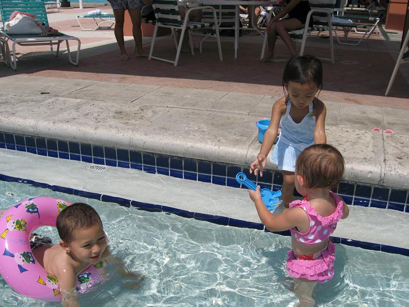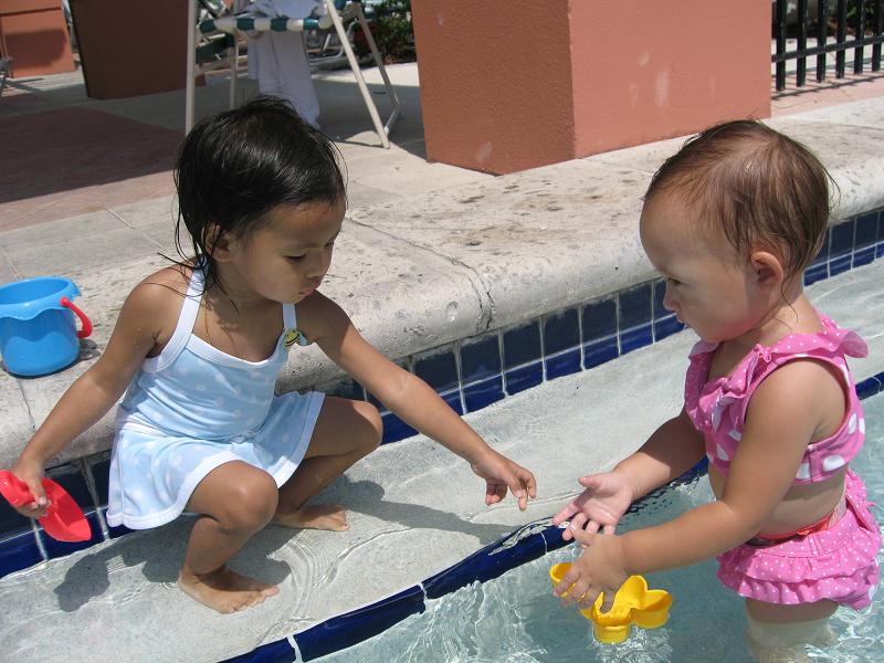 日本からホームステイで女の子Hちゃんが一ヶ月半うちにステイしています。来てからかれこれ3週間が経ち、彼女も大分アメリカの生活に慣れた様子。美亜の面倒もたくさん見てくれて家ではかなり楽させてもらってます。 彼女の横でくつろぐ美亜。 今日、WALMARTで4ドルいくらで買ったスツール。洗面所で手を洗う時のために買ったんだけど、そこに座ろうとして立ってくれない&どっちにしろ背が低すぎてそれがあっても手は洗えない。 でも、いいおもちゃになってます。どこにでも持ち歩いてます。 ちなみに今日はシュークリームを作った。Hちゃんもおいしいと言ってくれた。まきこさーん、私のシュークリームの出来上がりの写真はこんなです。
