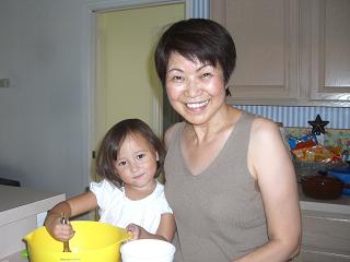 アトランタとメリーランドに行ってきました。 いとことばあば。 ミアは完璧にさしゃの真似っ子です。 なんでもさしゃがしたことをまねます。 実は私再婚しました。 こんなにスピード再婚、日本ではきっと生きていけません。 まあ、理由はいろいろあるのですが。不倫していたのでは決してないです。(念のために言っときます。) 彼は、ミアと二人暮しの私たちを遠くからいつも支えてくれてます。 今は遠距離なのですが、がんばって彼のいるメリーランドへ引っ越そうとしているところです。それが、ややこしくって時間がかかりそうです。 久々に作ったスフレチーズケーキ。ブルーベリーをたくさん狩ったのでケーキの底に敷いてみましたがあんまりいいアイデアではなかったです。 最近、何かケーキを作ろうとすると必ずヘルプをしたがるミアさん。 それが、結構大変でねえ。 チーズケーキ一緒に作りました。