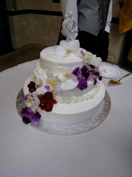 ご注文を頂いたのは3ヶ月ほど前。250人の大きな式だったので、作ろうかまよったのですが、せっかく頂いたチャンス。作らせていただきました。 ケーキは3段のストロベリーショートケーキというリクエストでした。他に、大きなケーキをお客さま用に。 デコレーションは式のフラワーリストがするので、3段のケーキのみ作ってくださいということでした。 3段ケーキの一番したの大きさは40センチ直径くらい。大きなケーキでした。 自分の作ったケーキで人が結婚するというのは、とてもうれしかったです。これを本職にしていきたいと思いましたね。 ピンクとか花とか繊細なかわいいケーキを作りたい~。 末永くお幸せに。。。
