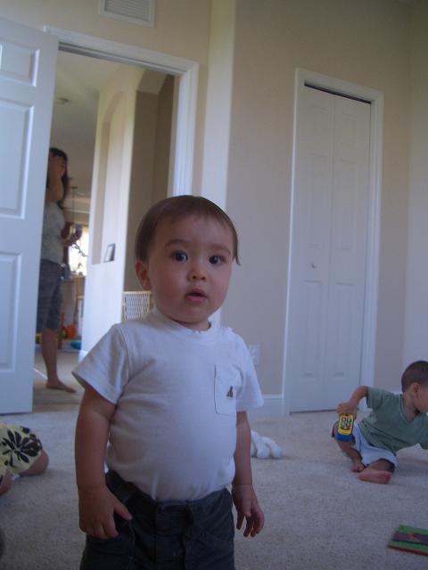 Kさんのお誕生日。サプライズパーテイーということで。おめでとうございました。 っていっても、私はKさんにはお会いしたことなかったのに、勝手におじゃましちゃいました。。。すみません。 でも、たくさんおこちゃまもいたし、ご飯もケーキもすべておいしかったし、楽しかった。ミーシャママどうもありがとございました。 シフォンケーキにチョコクリーム。軽くておいしかったですー。 えっ、ミアの方が4ヶ月も大きいはずなのに、ジャックくんのが大きい?!このまま動けない二人。 マイカ君。かっこいい。。。 リオ君。そんなに大きな瞳で見つめないで。 えみりちゃん。ブイーンッ。 エミリちゃん&けんくん。とってもかわいい。 |