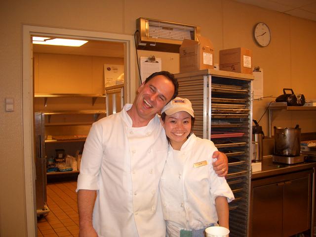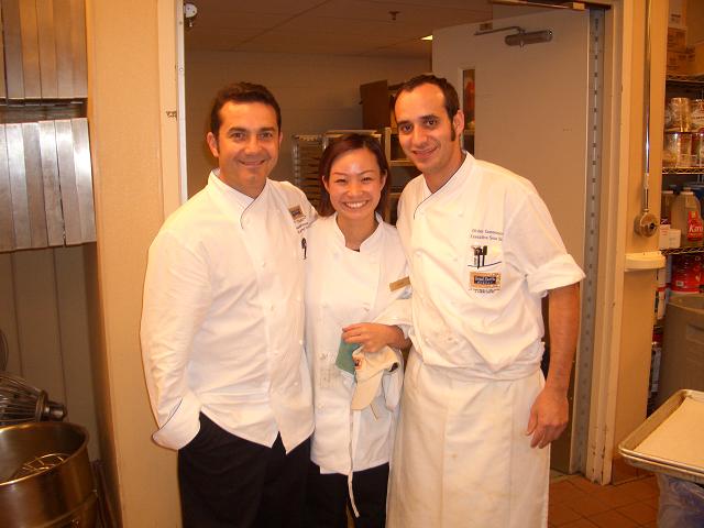 昨日が仕事最終日で、仕事のみなさんも悲しいけどバイバイと言ってくれました。なんやかんや愚痴やらあったけど、考えてみるといい人ばかり。たくさんの人に囲まれてかわいがってもらったな~と。 総料理長と副総料理長。二人とも、いづみなしではどうしたらいいの~と言ってくれた。副総料理長はフランス人♪とってもいい人。かわいがってくれました。 ペイストリーシェフ、デービッド。アメリカンチャンピオン。 新しく入ってきた子。仲良くなりました。 ななこちゃんと☆この日は私の最終日だったので、わざわざ働きにきてくれた。グリーテイングという仕事でお客さんにこんにちわという仕事。とってもかわいい服を着てとてもかわいかったななこちゃんでした。似合ってました。 これからは暇になるのでみなさん遊んでください。 |