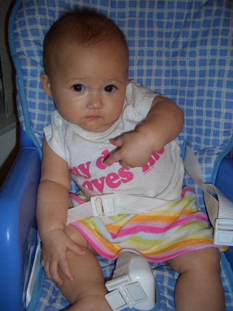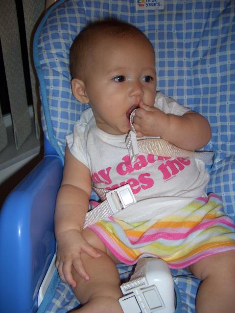 野菜をすりつぶしたのに、スープとかで味付けて食べさせたり、豆腐をくずしてあげたり、あと、赤ちゃん用のヨーグルトが大好き。やっぱり甘いものが好きらしい。 そして、ブロッコリーをどうしても食べてくれない。こんな小さいのに、好き嫌いがあるなんて。 この小さいうちに色んなものを食べさせてあげると好き嫌いの少ない子になるって聞いたからいろいろ工夫してあげてるのに、嫌いなものは口をあけずに、う~う~ってうなる。そして、機嫌が悪くなってふてくされる。生意気だわー。 おとといパパがタイから帰ってきて、始めて美亜がハイチェアに乗ってご飯食べてるのを見てびっくりしてた。早速ご飯あげてた。服には‘my daddy loves me’と書いてる。 ~~~~~~~~~~~~~~~~~~~~~~~~~~~~~~~~ 昨日はむかしからのお友達のよーこちゃんのお家に行ってきた。やっぱりいつも素敵。お昼ごはんを一緒に食べたんだけど、家に着いたらテーブルセッテイングもかわいく出来てた。おしゃれ~。 たくさんおしゃべりして楽しかったわ。美亜をだんなに預けていったのでとっても楽だった♪ 下の写真はよーこちゃんがラスベガスで買ってきたドッグクッキー。おもしろい。