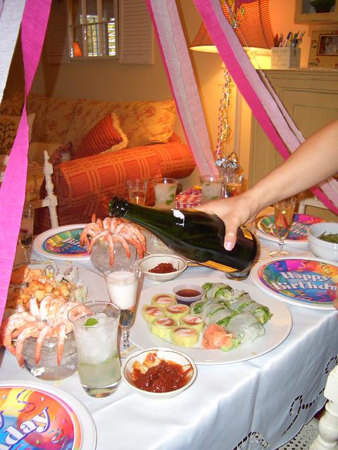 ななこちゃんは7月7日、姉は14日で合同パーテー☆ 場所は、やっぱりよーこちゃんのおうち。だって素敵なんだもん。よーこちゃんのおうちにあるものはすべて(ほんとにすべて)かわいい~☆うらやましい限りでございます。 お寿司をとって、シャンパン。カクテルを作って。楽しい時間でした。昔からのメンバーで。たのしーね。 ケーキはハーゲンダッツ!バニラのアイスのケーキ。よーこちゃんの提案で☆ろうそくで飾って。上の字は、私がスプレー缶のフロステイングで書いたんだけど、描くときに指も痛くなるし、難しかった。なので、汚い字になっちゃったけど、全体的にかわいくできた! お誕生日おめでとうございました。