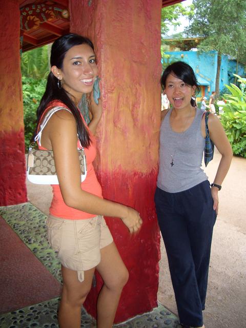デズニーに行って来ました!オーランドのデズニーワールドには4つのテーマパークと2つのプールパークがあります。世界で一番大きいデズニー。だと思う。 私たちはアニマルキングダムというパークに行きました。うちのダンナさん、ダンナさんの妹ケリー、かよちゃん、私、美亜、4人プラス赤ちゃんで。朝から行くと暑いので4時半くらいにパークに到着。 到着と同時に雨、雨、雨。 駐車場からトラムに乗って入場口へ。赤ちゃんを連れて、雨が降り出すと大変だね~。 でも、入る時には雨も小降りに。そしてだんだんとあがっていった。ラッキー☆ うちのだんなさんは、あんまり地図を見てこっちに行って、こっちに行ってっていうやり方は好きではないようで、時間があるからいいやんっていう感じでうろうろしました。広いから、私らどこにいってるんやろ~という感じでした。(地図を手にした私もどっちに行ってるのかいまいちつかめず)が、新しくできたエベレストというジェットコースターには絶対に乗る!ということで、それを目指していきました。ジェットコースターの苦手なかよちゃんと、ケリーは美亜と一緒に待ってもらい、私とダンナは挑戦のってみた。まあまあだったな。そんなにこわくなかった。 あとは、アニマルキングダムだけに動物がたくさんいて写真をパチリパチリ。 サファリに行く時間がのが残念だったけど(レストランの予約のため)、その後はシーフードレストランで豪華なお食事☆おいしかったー。 魚とかカニとかロブスターとかたらふく食べて満足! しかも、そのレストランから見える夕日がきれかった☆ 久しぶりに行くデズニーは楽しいね。